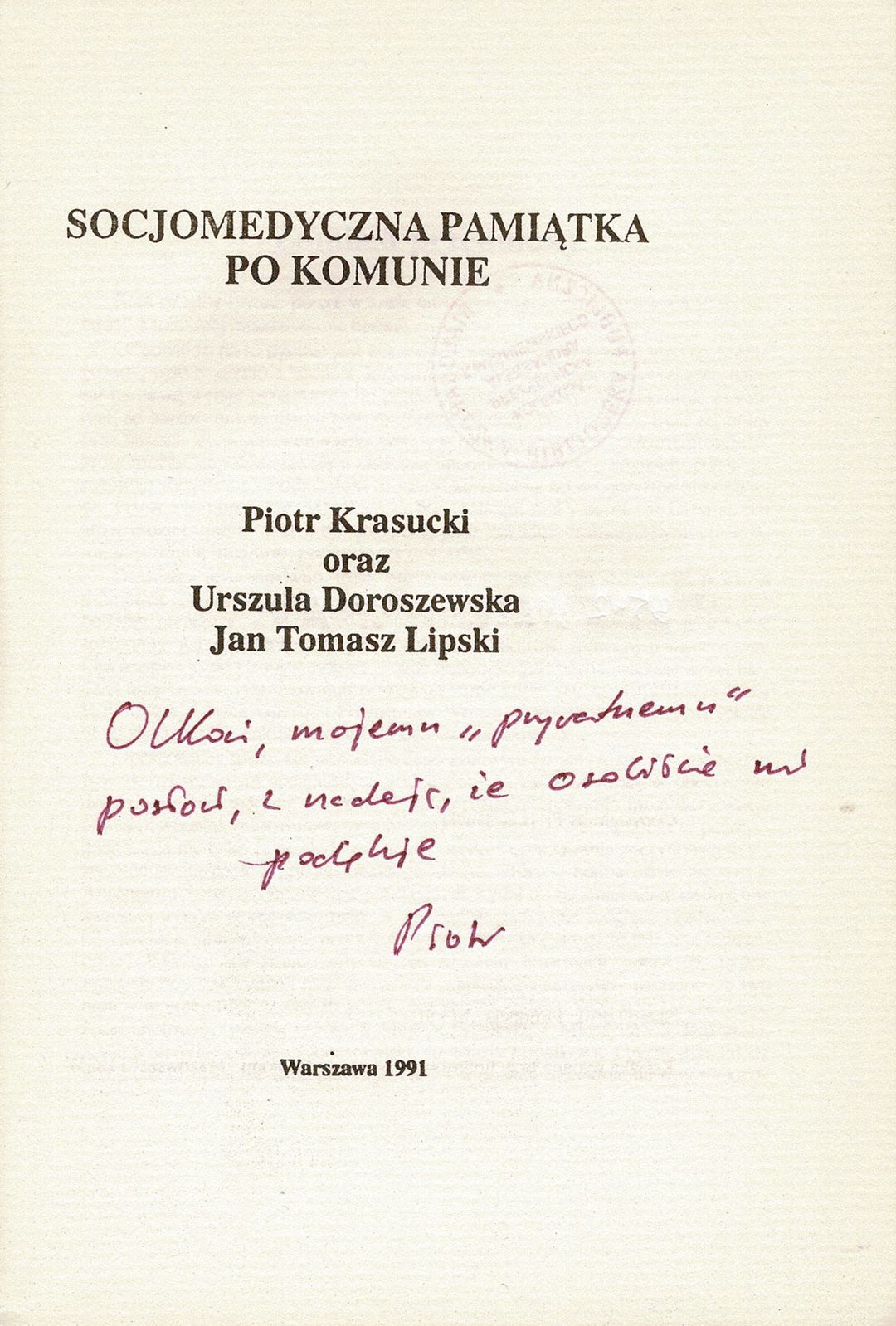 | Autorzy: | Piotr Krasucki Urszula Doroszewska Jan Tomasz Lipski |