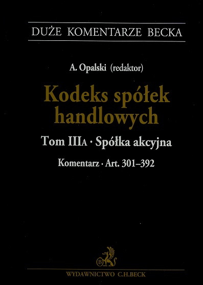 | Inne tytuły: | Art. 301-392 KSH KSH T. 3a, Kodeks spółek handlowych T. 3a, Spółka akcyjna komentarz - Art. 301-392 |