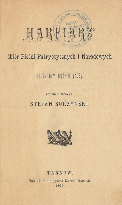 | Inne tytuły: | na cztery męskie głosy zbiór pieśni patryotycznych i narodowych "Harfiarz" Serya 1 |