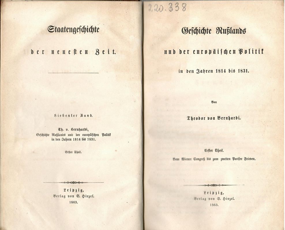 | Inne tytuły: | Geschichte Russlands und der europäischen Politik in den Jahren 1814 bis 1831 T. 1, |