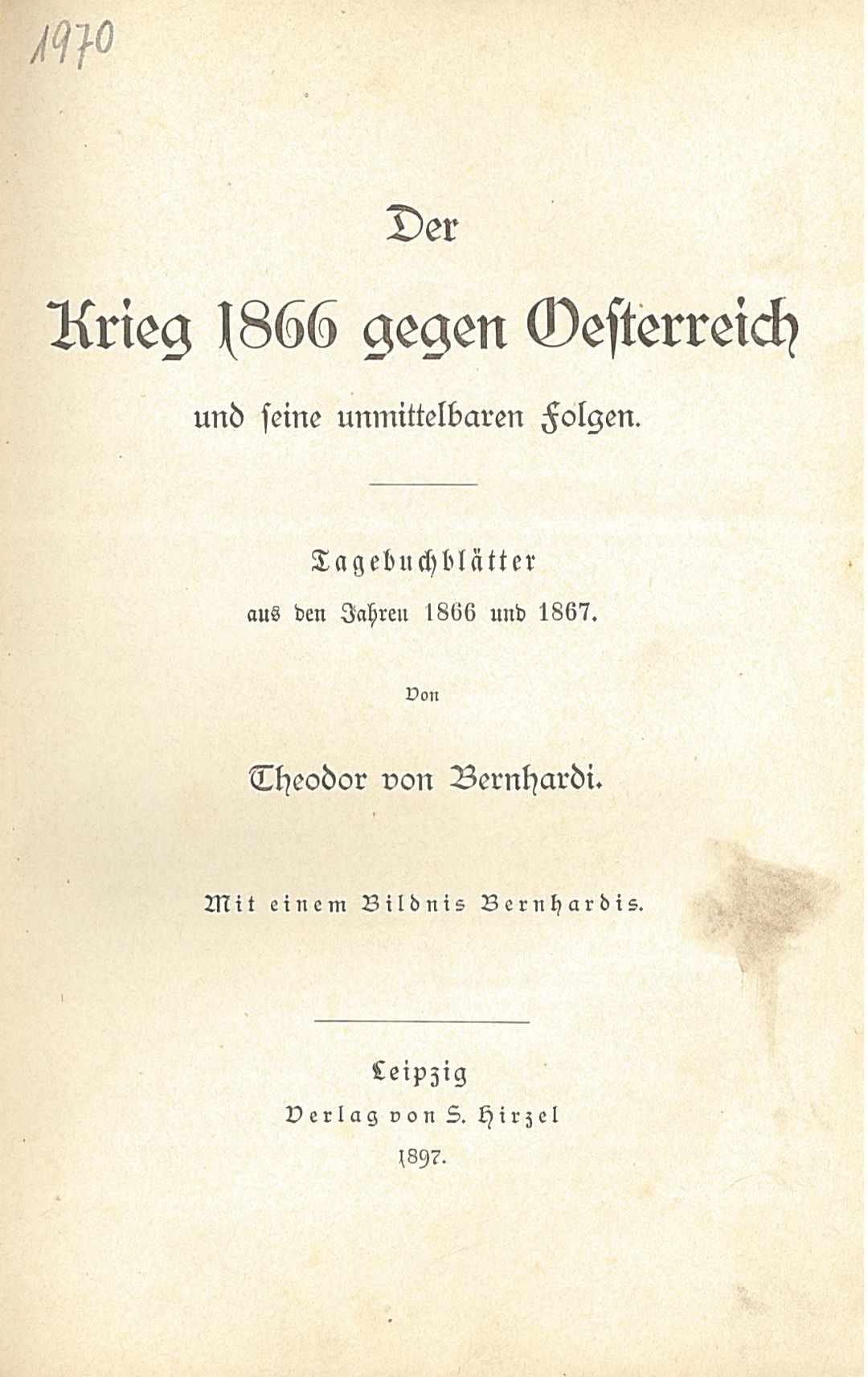 Aus dem Leben Theodor von Bernhardi: Der Krieg 1866 gegen Oesterreich und seine unmittelbaren Folgen
