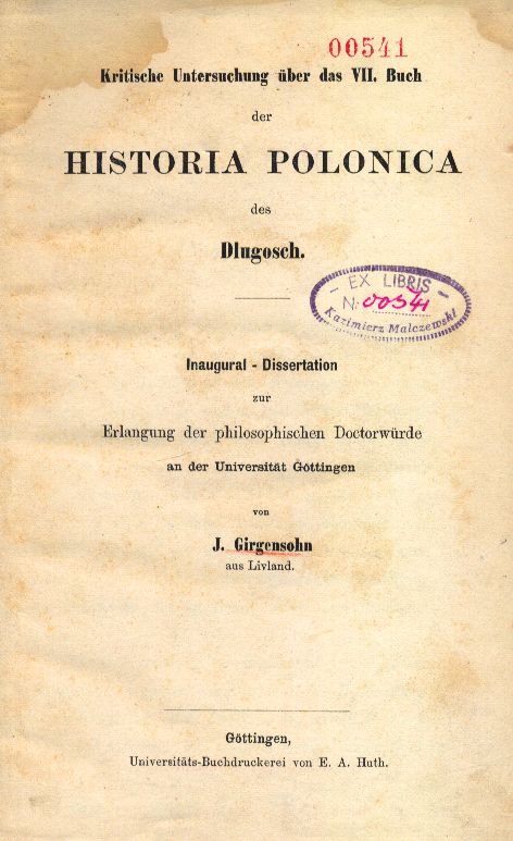 Kritische Untersuchung über das VII. Buch der Historia Polonica des Dlugosch