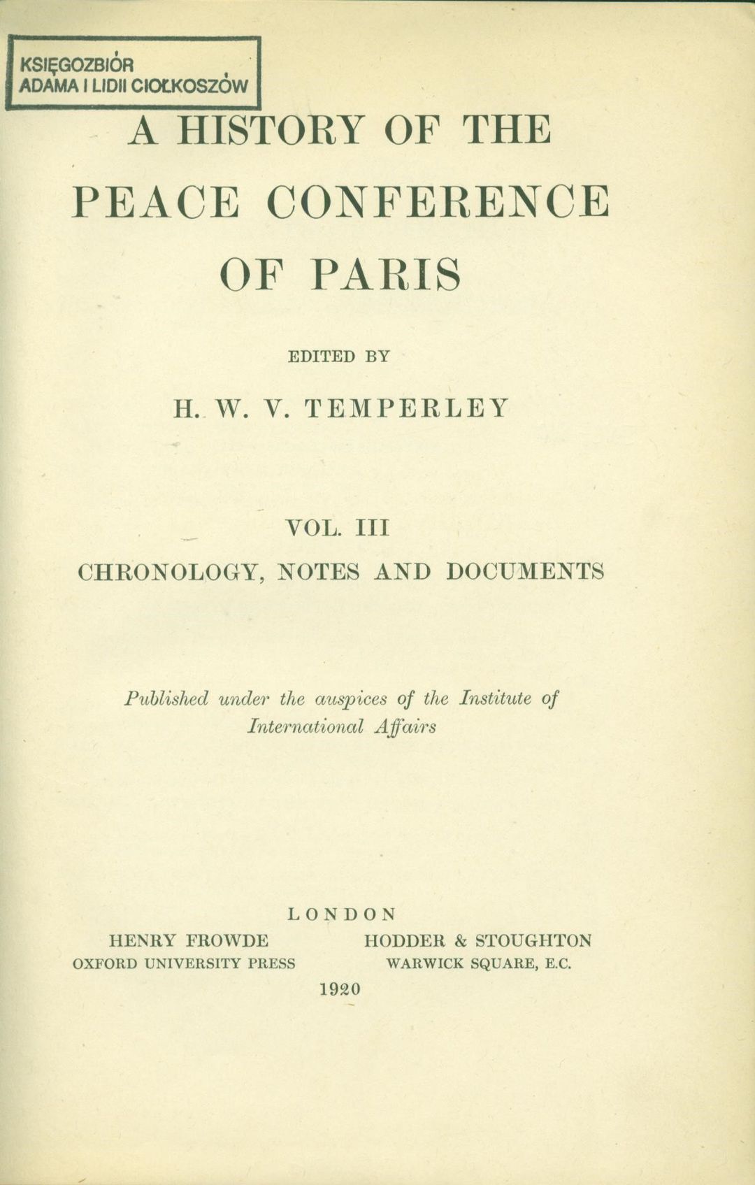 | Inne tytuły: | A history of the peace conference of Paris Vol. 3, |