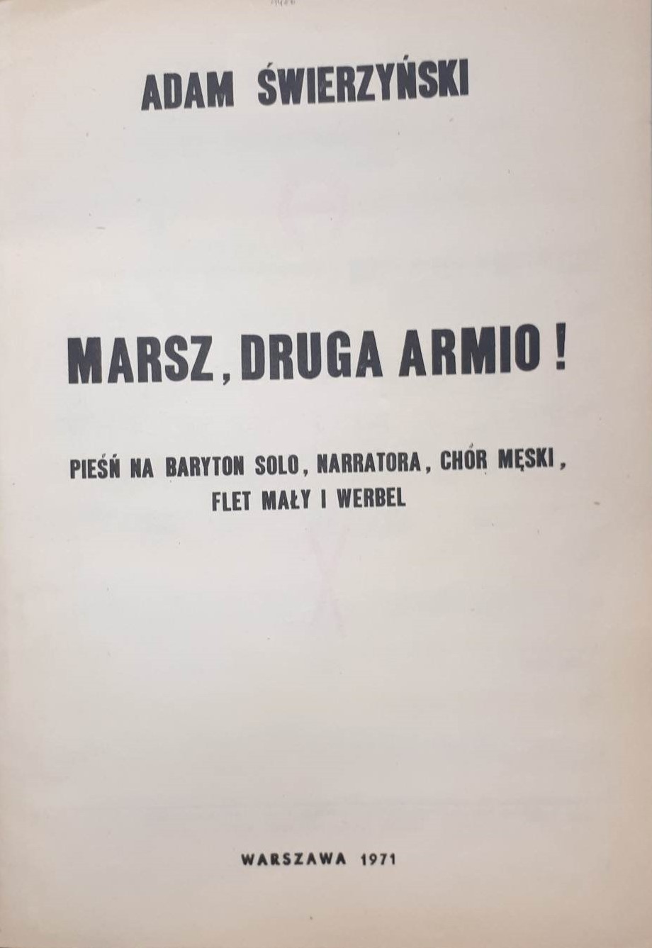 pieśń na baryton solo, narratora, chór męski, flet mały i werbel