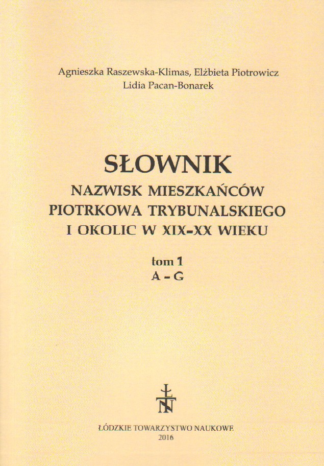 Słownik nazwisk mieszkańców Piotrkowa Trybunalskiego i okolic w XIX-XX wieku: A-G