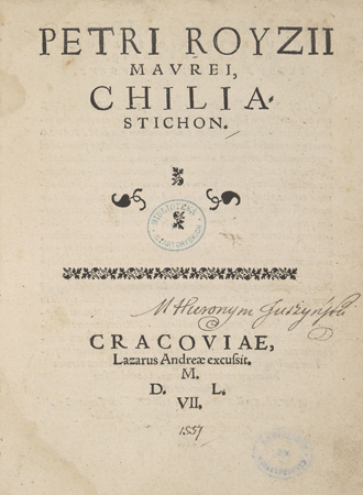 Petri Royzii Mavrei, Chiliastichon