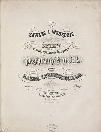 | Inne tytuły: | dzieło 12 śpiew z towarzyszeniem fortepianu przypisany Pani J. B. |