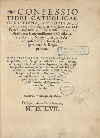 Confessio Fidei Catholicae Christiana, Avtoritate Synodi Provincialis, Quae Habita est Petrcouiæ, Anno M. D. LI. mense Iunio, edita