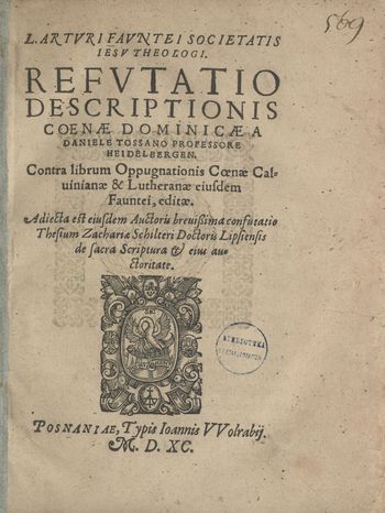 L. Artvri Favntei Societatis Iesv Theologi. Refvtatio Descriptionis Coenae Dominicae A Daniele Tossano Professore Heidelbergen. Contra librum Oppugnationis Coenae Caluinianae & Lutheranae eiusdem Fauntei, editae. Adiecta est eiusdem Auctoris breuissima confutatio Thesium Zachariae Schilteri Doctoris Lipsiensis de sacra Scriptura et eius auctoritate