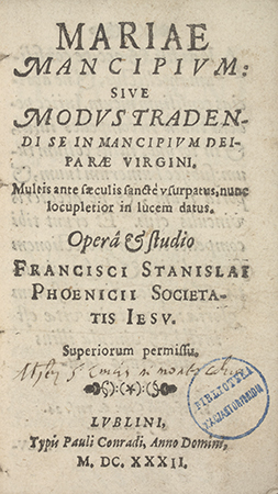 Mariae mancipivm sive modvs stradendi se in mancipivm Deiparae Virgini multis ante saeculis sanctaevsurpatvs, nunc locupletior in lucem datus