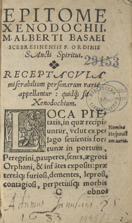 Epitome Xenodochii m. Alberti Bassaei Scebresinensis [...] siue capita qu[a]eda[m] ex Xenodochio seu libro de officio erga hospites, peregrinos, pauperes variasque miserabiles p[er]sonas p[ro]pter reformandu[m] hospitalia edita [...]