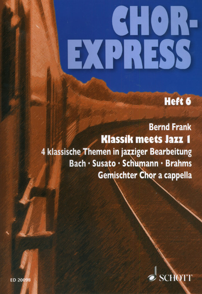 | Inne tytuły: | Bach, Susato, Schumann, Brahms Gemischter Chor a cappella Vier klassische Themen in jazziger Besetzung 4 klassische Themen in jazziger Bearbeitung 4 klassische Themen in jazziger Besetzung Klassik meets Jazz 1, |