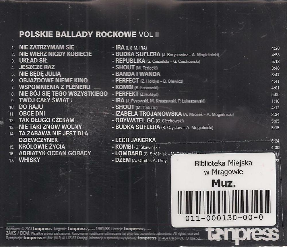 | Inne tytuły: | Polskie ballady rockowe vol. 2 |