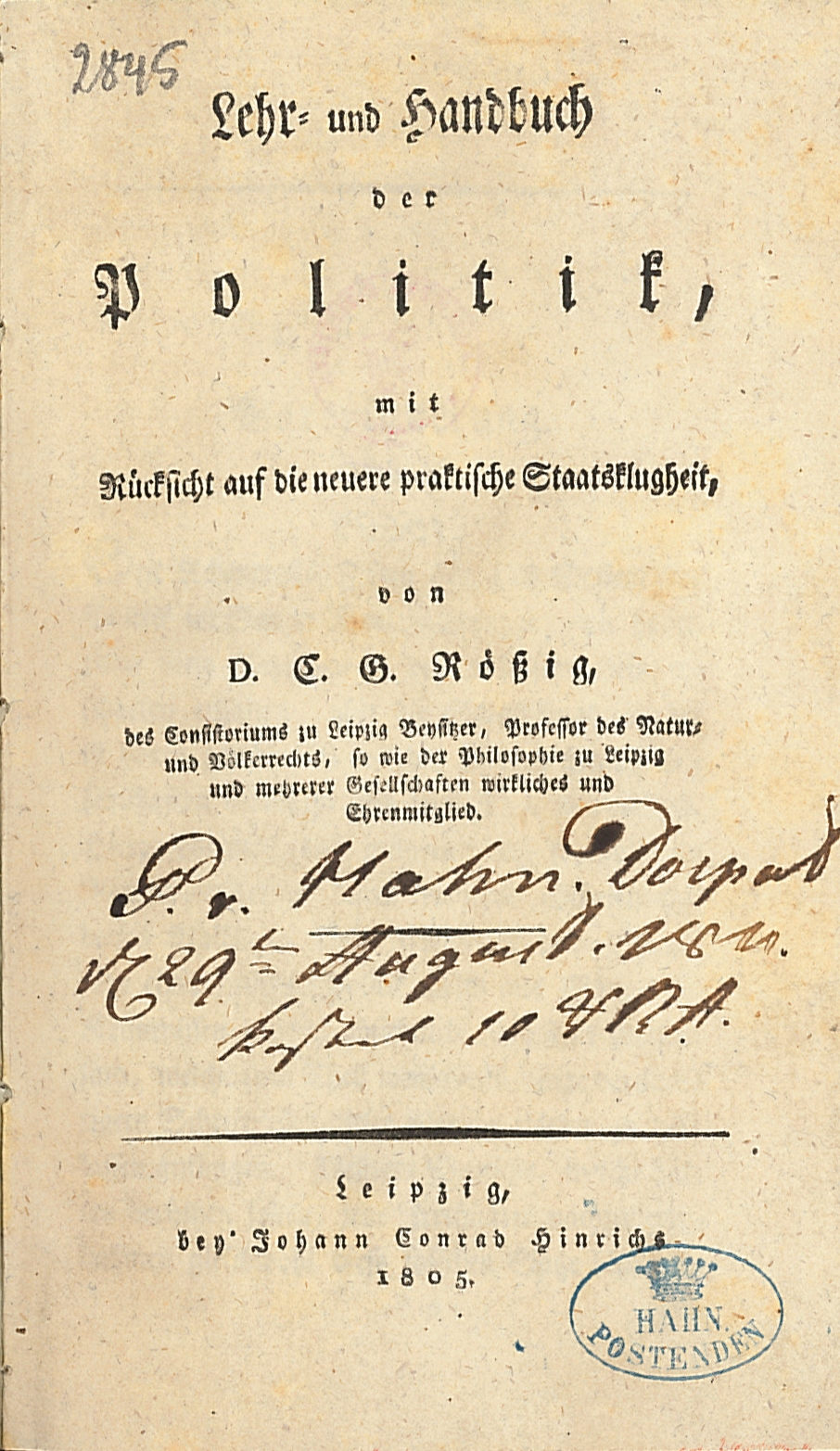 | Z autografem: | Paul von Hahn (1793-1862) |