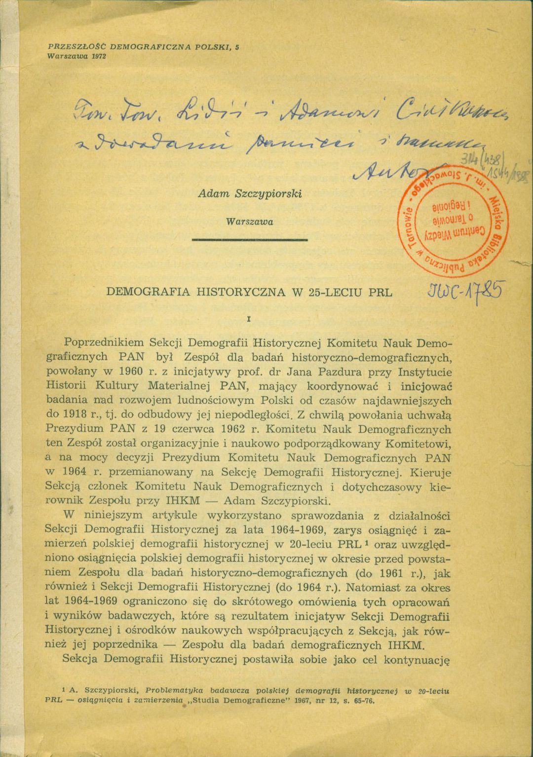 | Inne tytuły: | Demografia historyczna w dwudziestopięcioleciu Polskiej Rzeczypospolitej Ludowej |