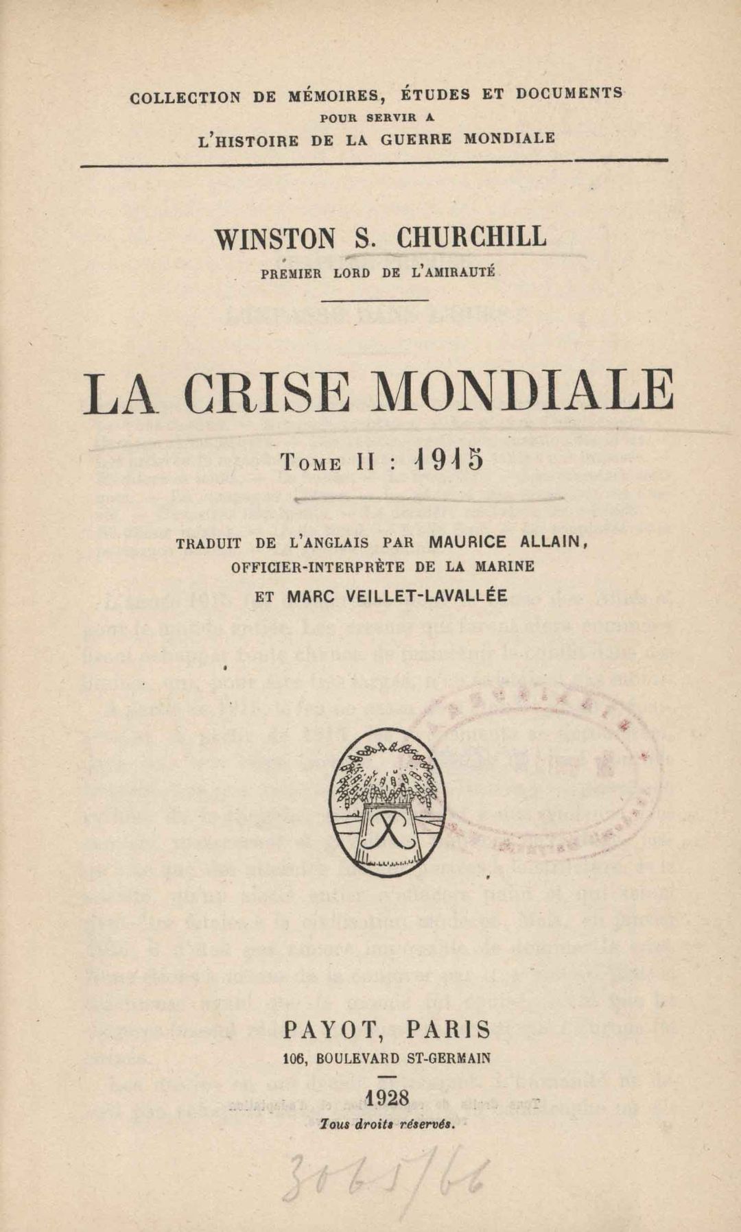 | Wydane w seriach: | Collection de Mémoires, Études et Documents pour Servir a l'Histoire de la Guerre Mondiale |