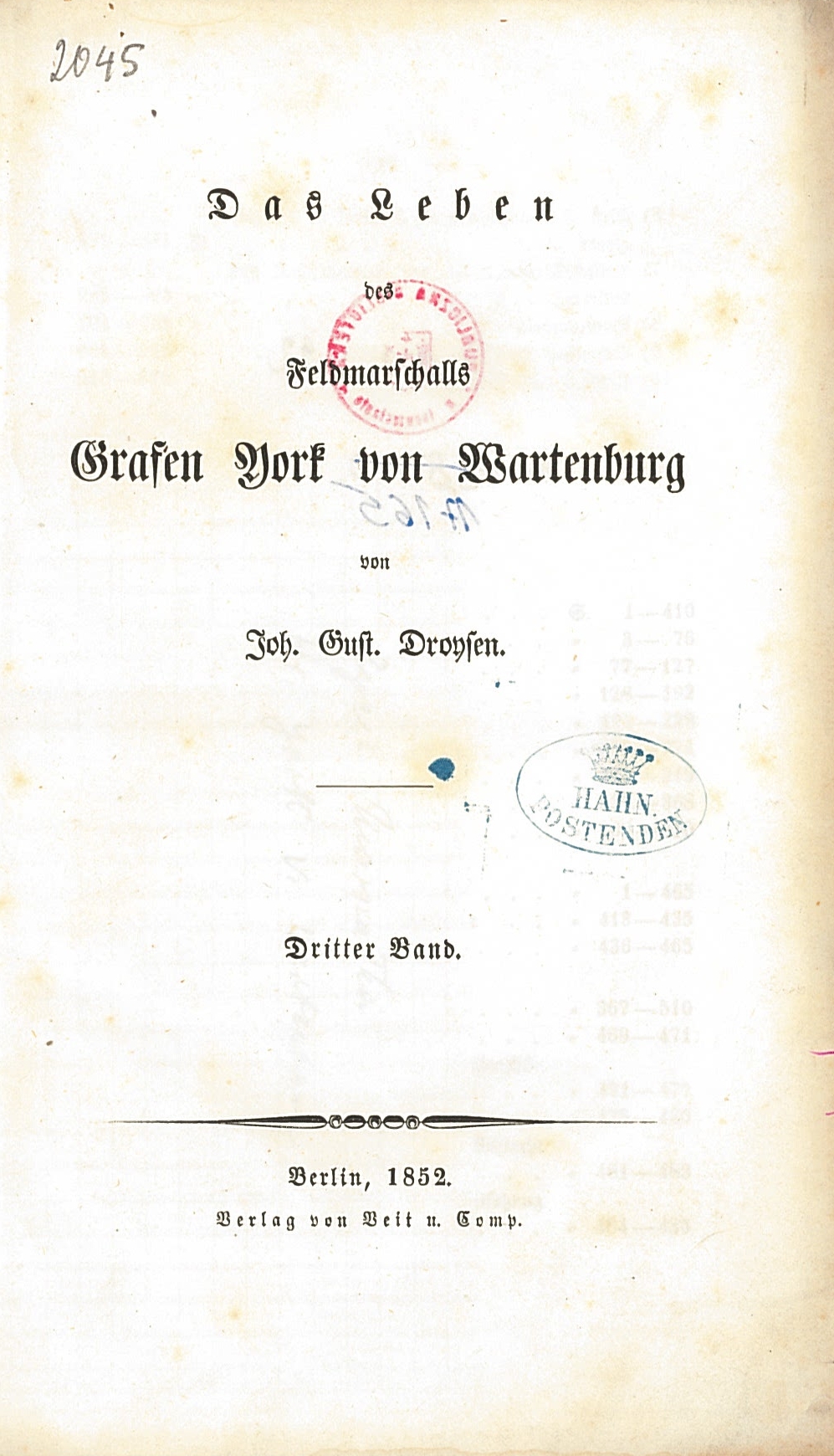 | Inne tytuły: | Das Leben des Feldmarschalls Grafen York von Wartenburg Bd. 3 |