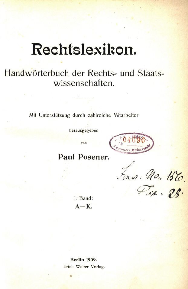 | Inne tytuły: | A-K Posener's Rechtslexikon |