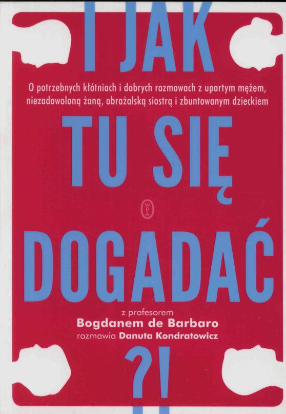 Pewnie to znasz... Kochasz swoją drugą połówkę, ale kłócicie się wciąż o to samo. I żadne nie ma ochoty ustąpić. Dzwonisz do mamy, ale rozmowa znów kończy się tą samą sprzeczką. Z bratem nie rozmawiasz, z nim po prostu nie da się rozmawiać! Nie macie kontkatu od roku, może dłużej... Kochamy się, ale kłócimy. Bliscy są dla nas ważni, ale doprowadzają nas czesto do furii. Rodzina - najbliżsi, a czasami najdalsi ludzie. Dlaczego tak trudno się dogadać?! Jeden z najwybitniejszych polskich terapeutów Bogdan de Barbaro i dziennikarka Danuta Kondratowicz zapraszają do mądrej rozmowy o tym, jak dbać o rodzinne relacje, jak twórczo rozwiązywać konflikty i nie popełniać starych błędów. Wspólnie zajrzymy za drzwi gabinetu psychoterapeutycznego i spróbujemy zrozumieć, kiedy kryzys zaczyna nami rządzić, jak słowa, których używamy w rozmowach z bliskimi, budują nasze relacje, a wysłuchanie racji żony, męża, siostry czy dziecka wzbogaca nas, rozwija i... pomaga kochać.
