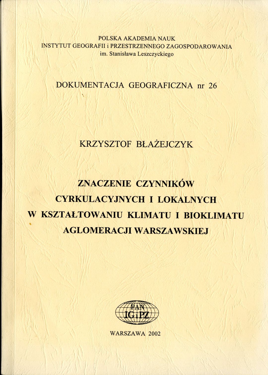 Znaczenie czynników cyrkulacyjnych i lokalnych w kształtowaniu klimatu i bioklimatu aglomeracji warszawskiej