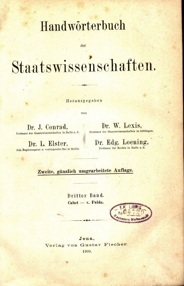 | Redakcja: | Johannes Conrad (1839-1915) Wilhelm Lexis (1837-1914) Ludwig Elster (1856-1935) Edgar Loening (1843-1919) |