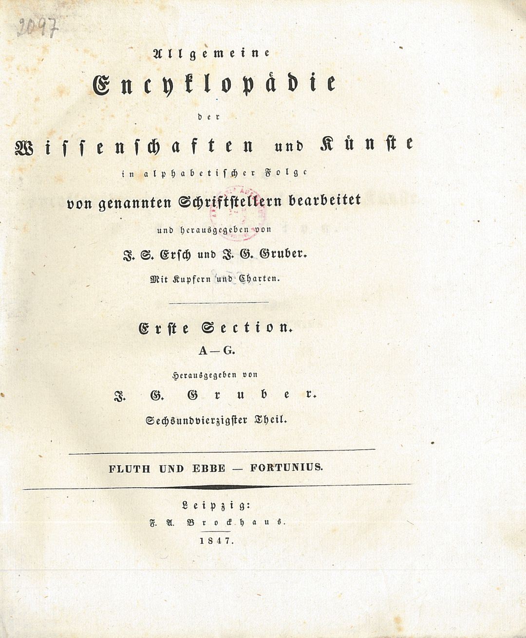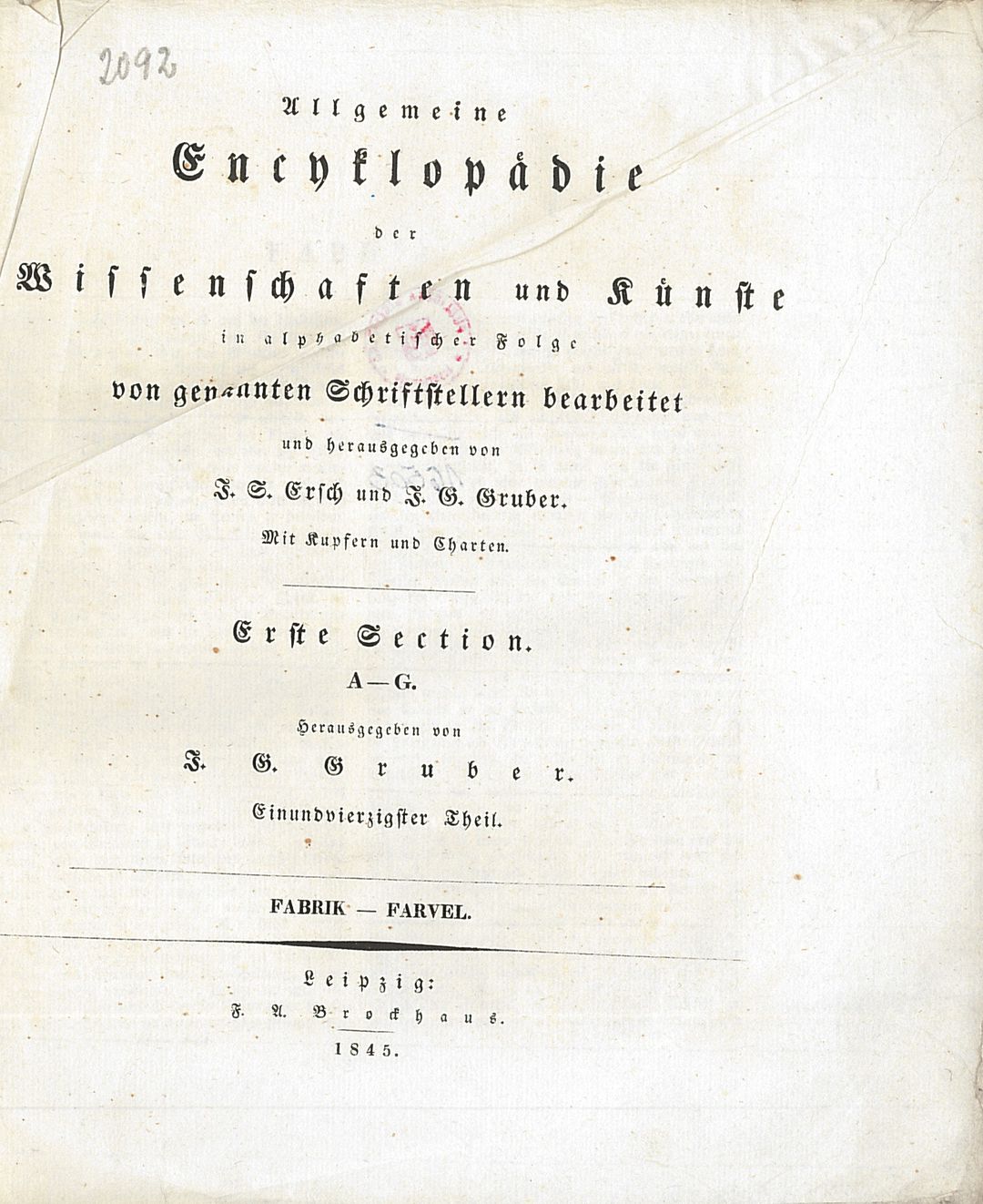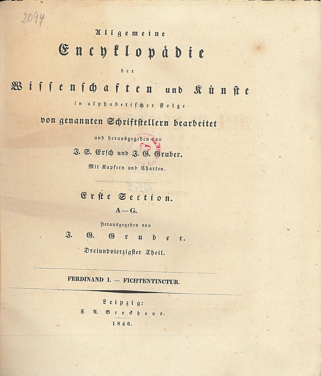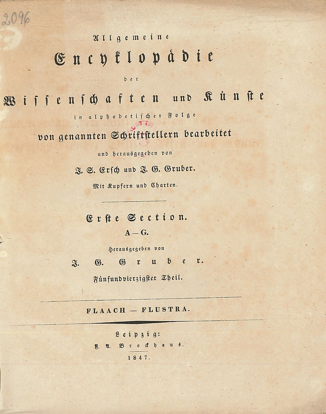 | Inne tytuły: | Allgemeine Encyclopädie der Wissenschaften und Künste Section 1, Epimachus-Ergyne Fabrik-Farvel Fas-Ferchard Ferdinand I-Fichtentinctur Ficinus-Fizes Flaach-Flustra Fluth und Ebbe-Fortunius |