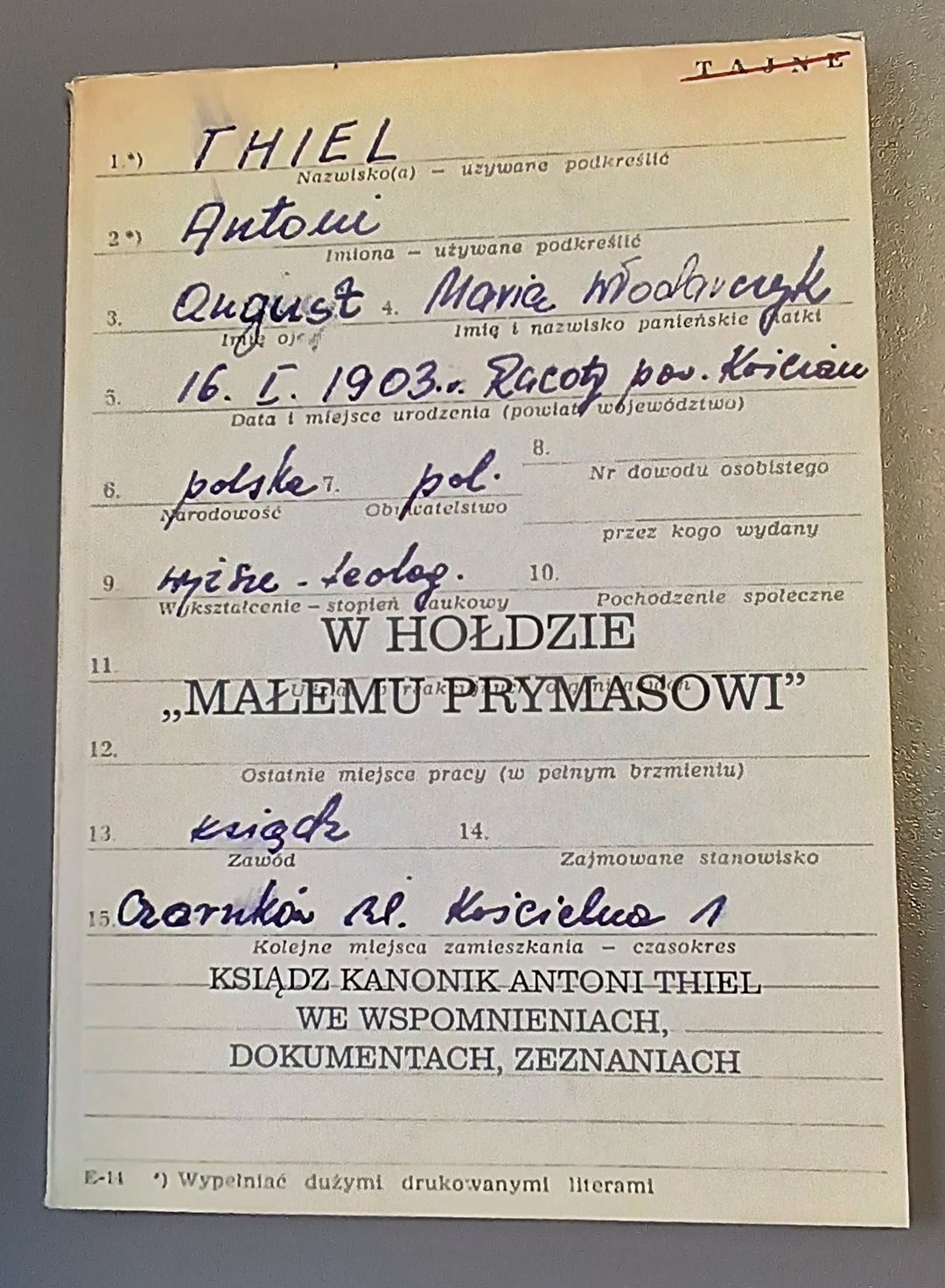 ksiądz kanonik Antoni Thiel we wspomnieniach, dokumentach, zeznaniach