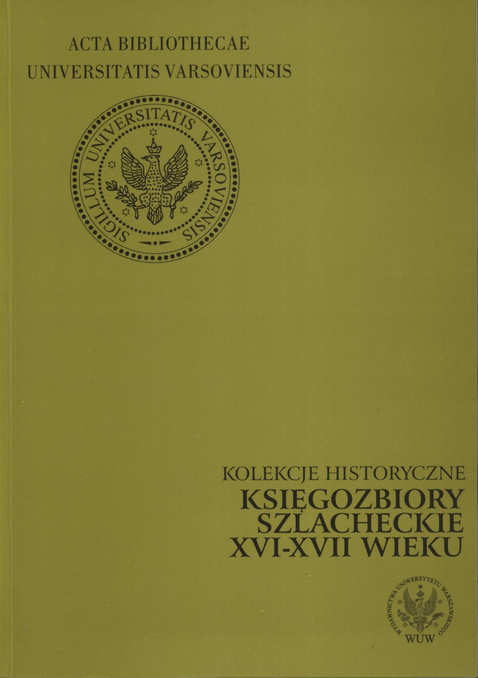 | Inne tytuły: | kolekcje historyczne Instygator koronny Andrzej Lisiecki i jego księgozbiór Renesansowy księgozbiór rodziny Strzemboszów |