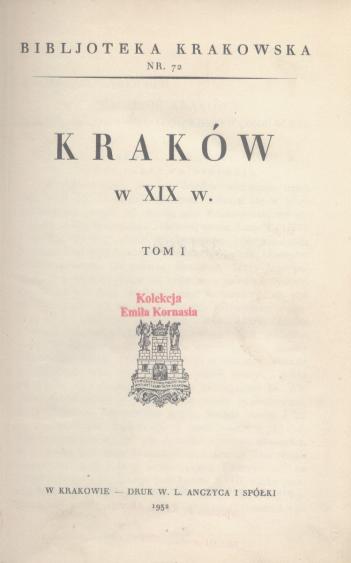 | Inne tytuły: | Kraków w XIX w. T. 1-2 |
