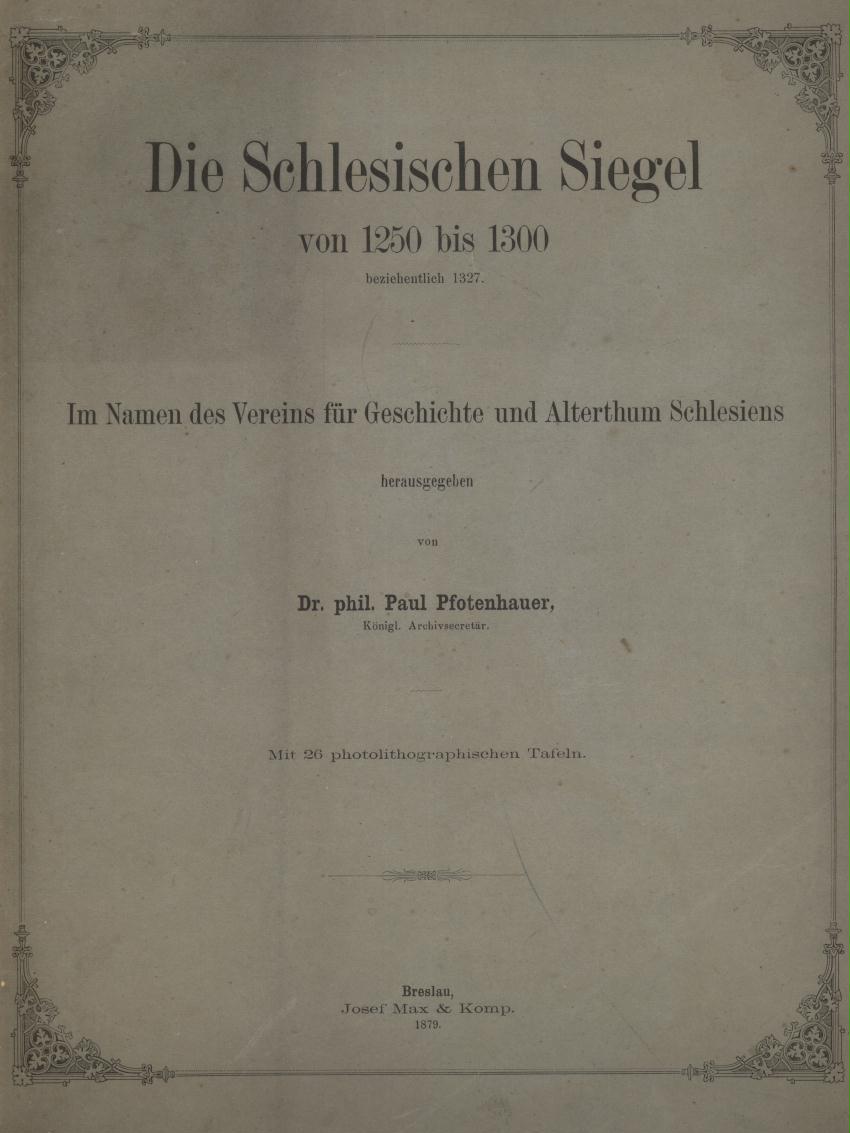 Die Schlesischen Siegel von 1250 bis 1300 beziehentlich 1327