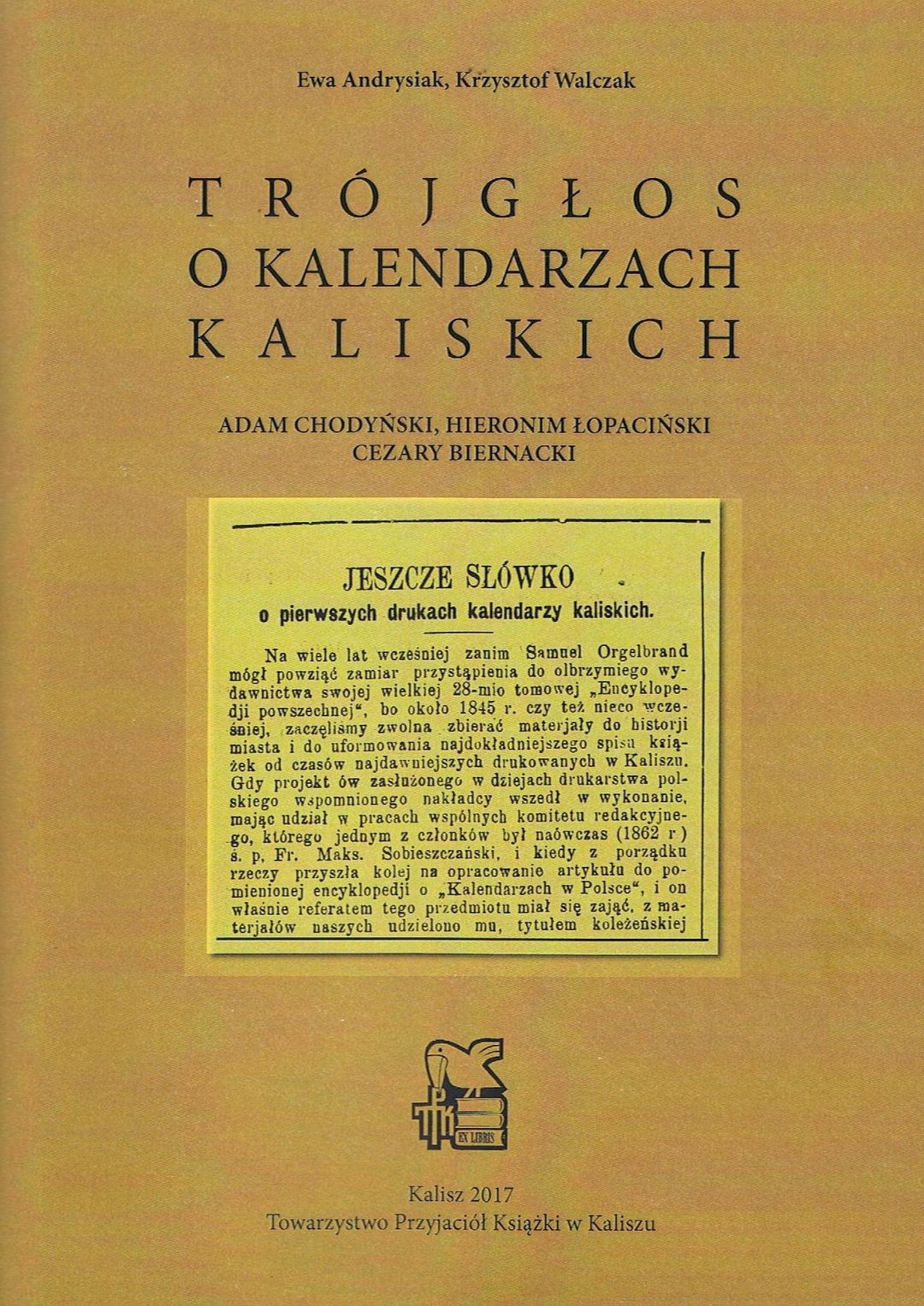 | Wydawcy: | Towarzystwo Przyjaciół Książki - Oddział (2017) staraniem Towarzystwa Przyjaciół Książki Calisiae (2017) |