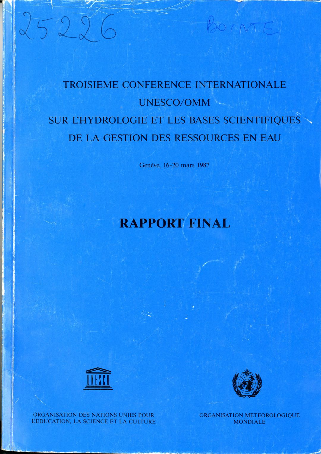 Troisième Conférence Internationale UNESCO/OMM sur l'Hydrologie et les Bases Scientifiques de la Gestion des Ressources en Eau, Genève, 16-20 mars 1987