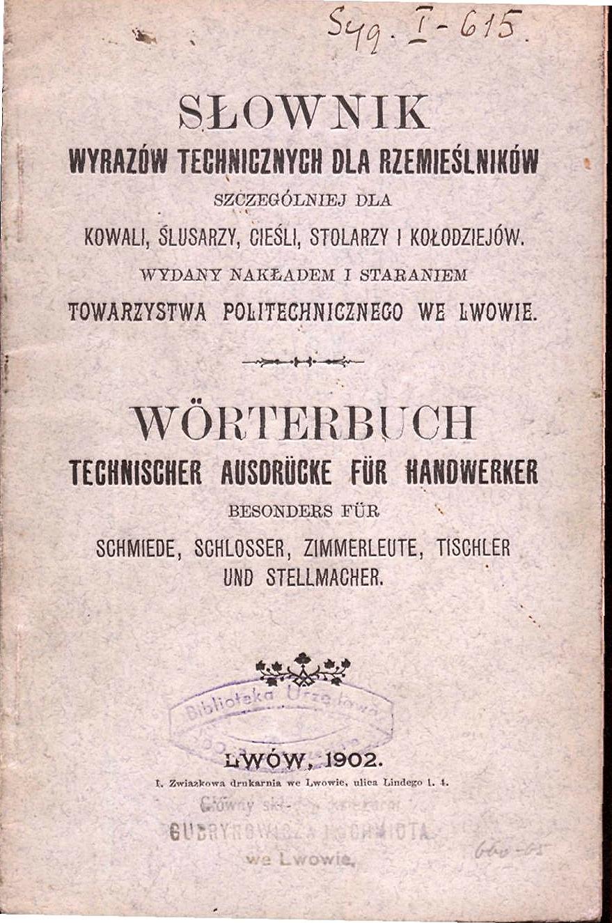 Słownik wyrazów technicznych dla rzemieślników: