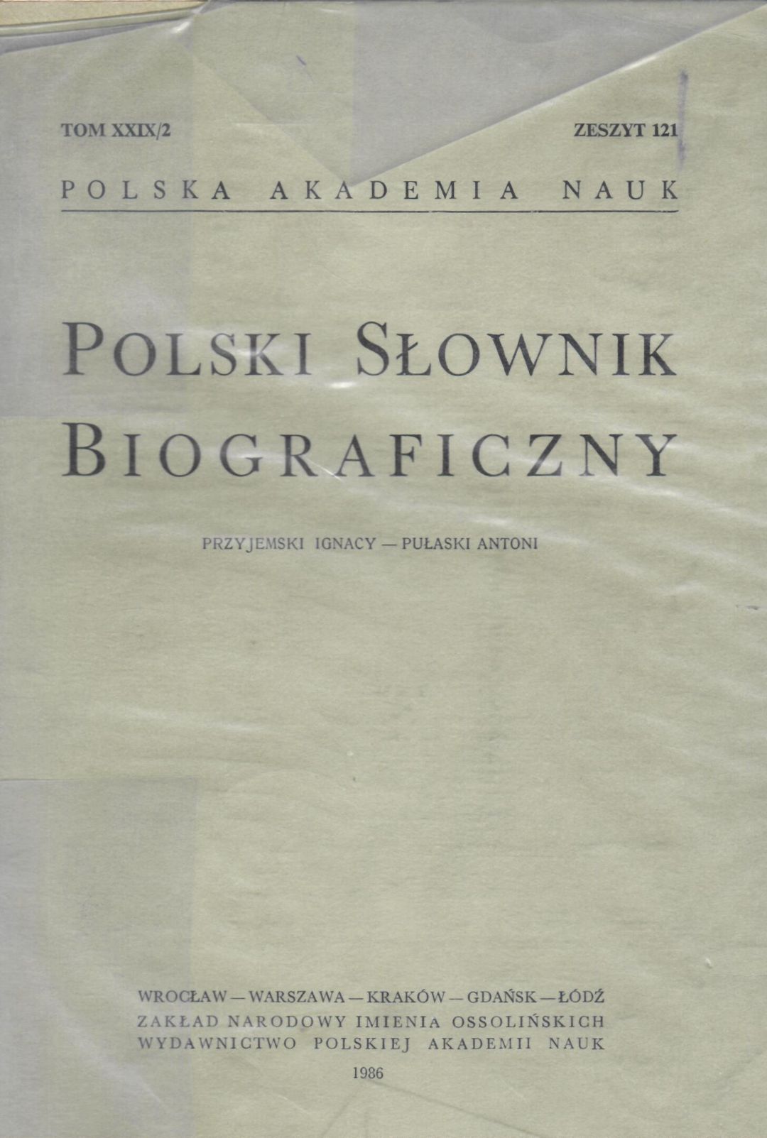 Polski słownik biograficzny. T. 29/2. Z. 121, Przyjemski Ignacy - Pułaski Antoni