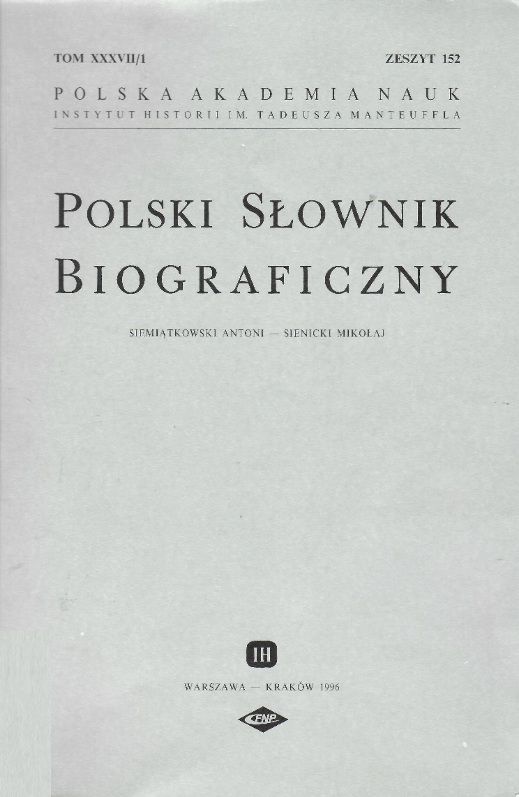 Polski słownik biograficzny. T. 37/1. Z. 152, Siemiątkowski Antoni - Sienicki Mikołaj