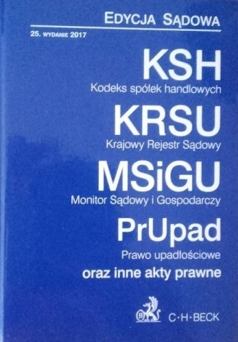 | Inne tytuły: | teksty jednolite wraz z indeksem rzeczowym KSH, KRSU, MSiGU, PrUpad oraz inne akty prawne |