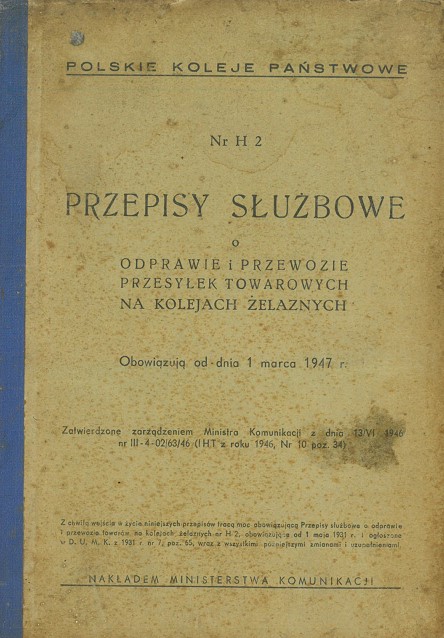 Zatwierdzone zarządzeniem Ministra Komunikacji z dnia 13 VI 1946 nr III-4-02/63/46 (IHT z roku 1946, Nr 10 poz. 34)