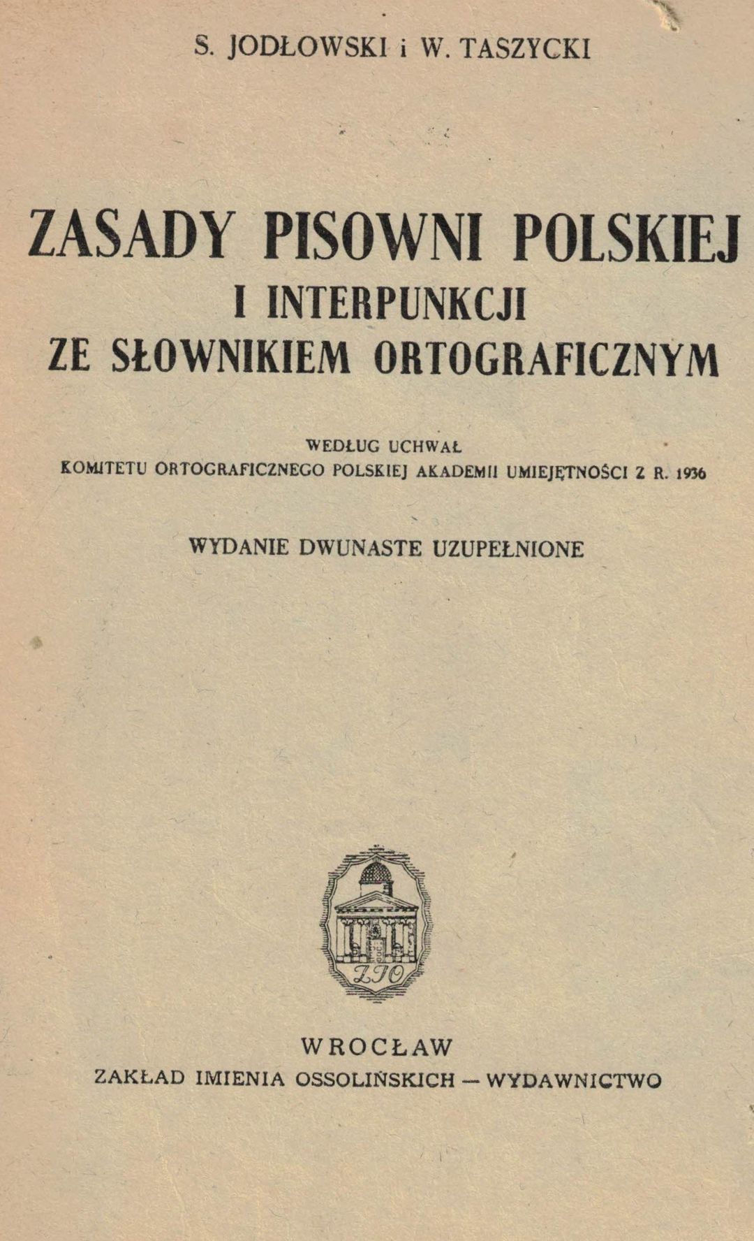 | Inne tytuły: | wg uchwał Komitetu Ortograficznego Polskiej Akademii Umiejętności z roku 1936 |