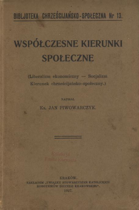 (Liberalizm ekonomiczny. Socjalizm. Kierunek chrześcijańsko-społeczny)