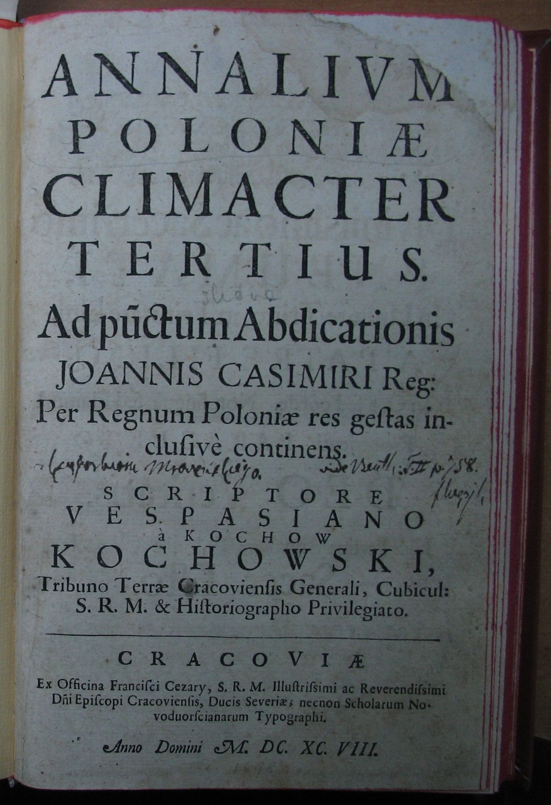 | Wydane w seriach: | Annalium Poloniae ab obitu Vladislai IV Climacteres |
