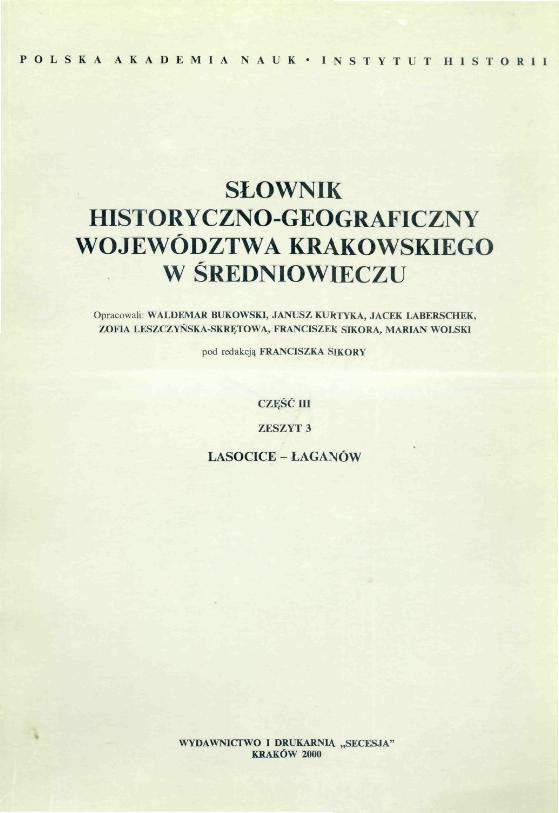 Słownik historyczno-geograficzny województwa krakowskiego w średniowieczu: Lasocice - Łaganów