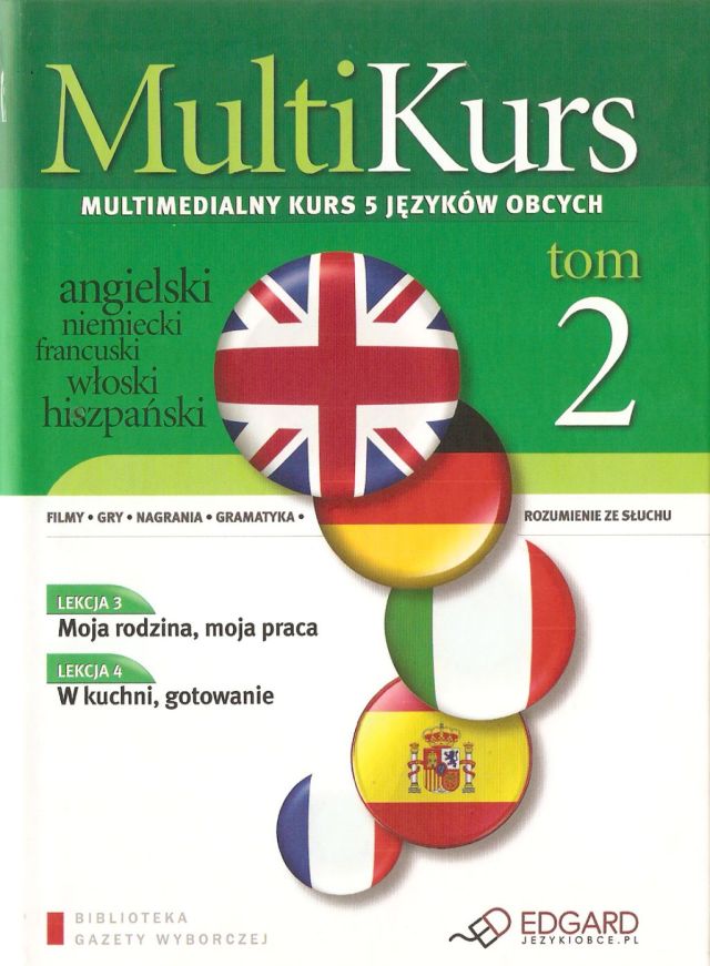 | Inne tytuły: | angielski, niemiecki, francuski, włoski, hiszpański multimedialny kurs 5 języków obcych MultiKurs T. 2 |