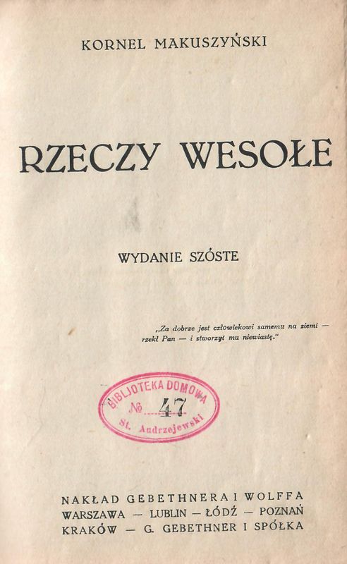 | Wydawcy: | Vipart (2004) PiK (1994) Wydawnictwo Literackie (1960-1969) Bibljoteka Polska (1924) Księgarnia Polska B. Połonieckiego (1914) Gebethner i Wolff |