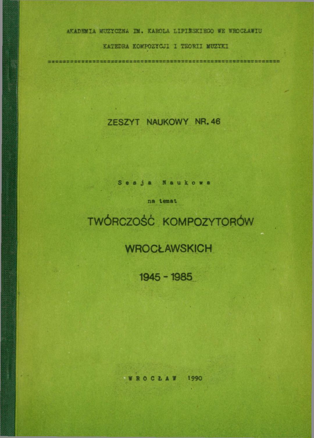 Sesja Naukowa na temat Twórczość Kompozytorów Wrocławskich (1945-1985)
