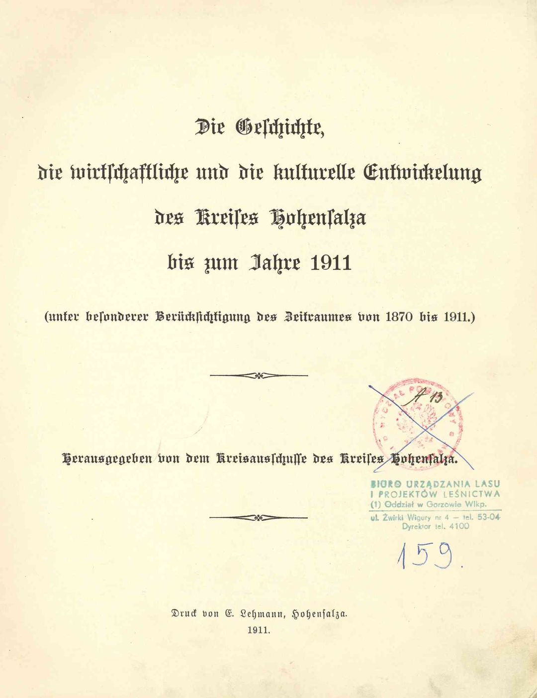 Die Geschichte, die wirtschaftliche und die kulturelle Entwickelung des Kreises Hohensalza bis zum Jahre 1911 (unter besonderer Berücksichtigung des Zeitraumes von 1870 bis 1911)