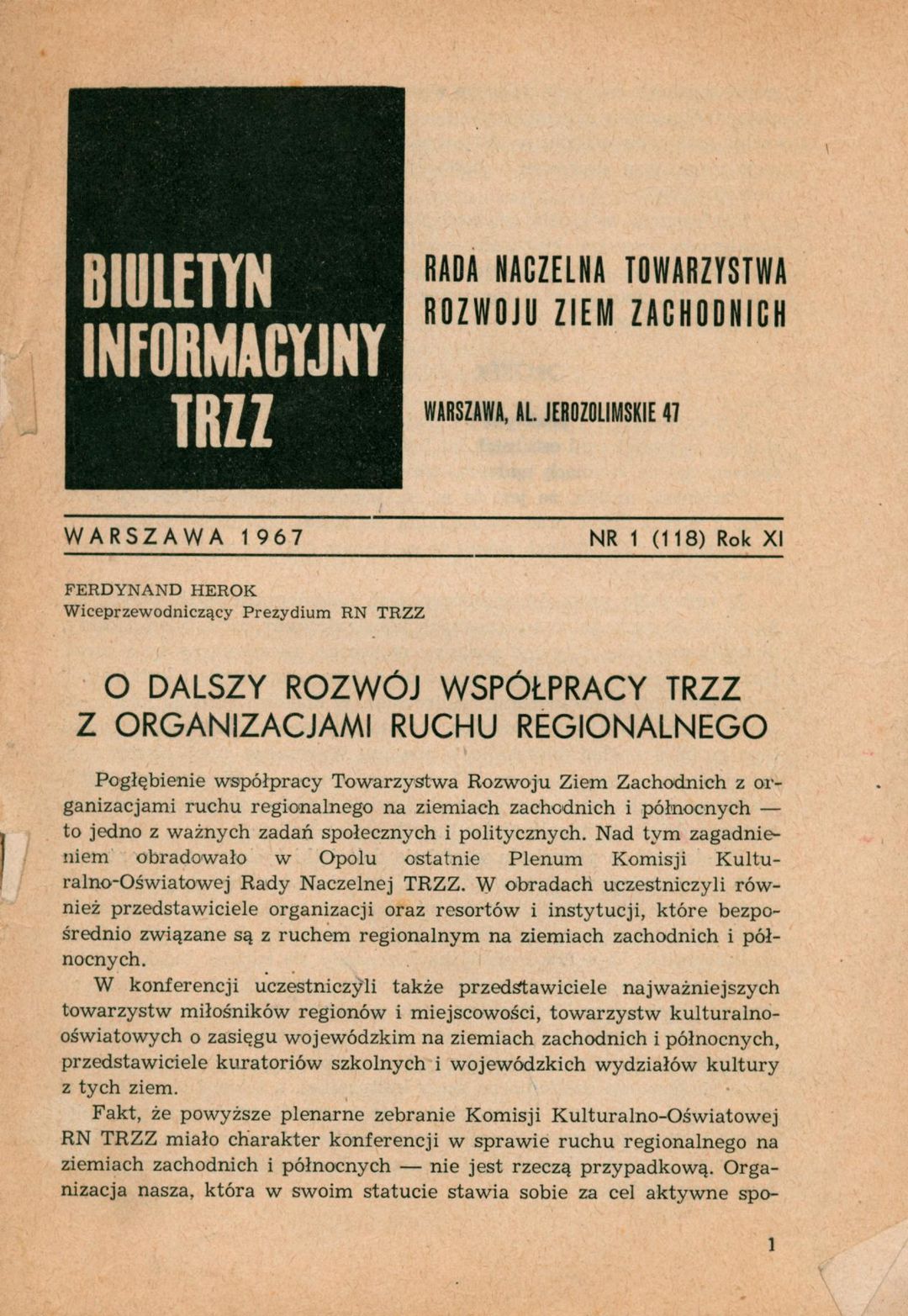 | Instytucja sprawcza: | Towarzystwo Rozwoju Ziem Zachodnich - Rada Naczelna |