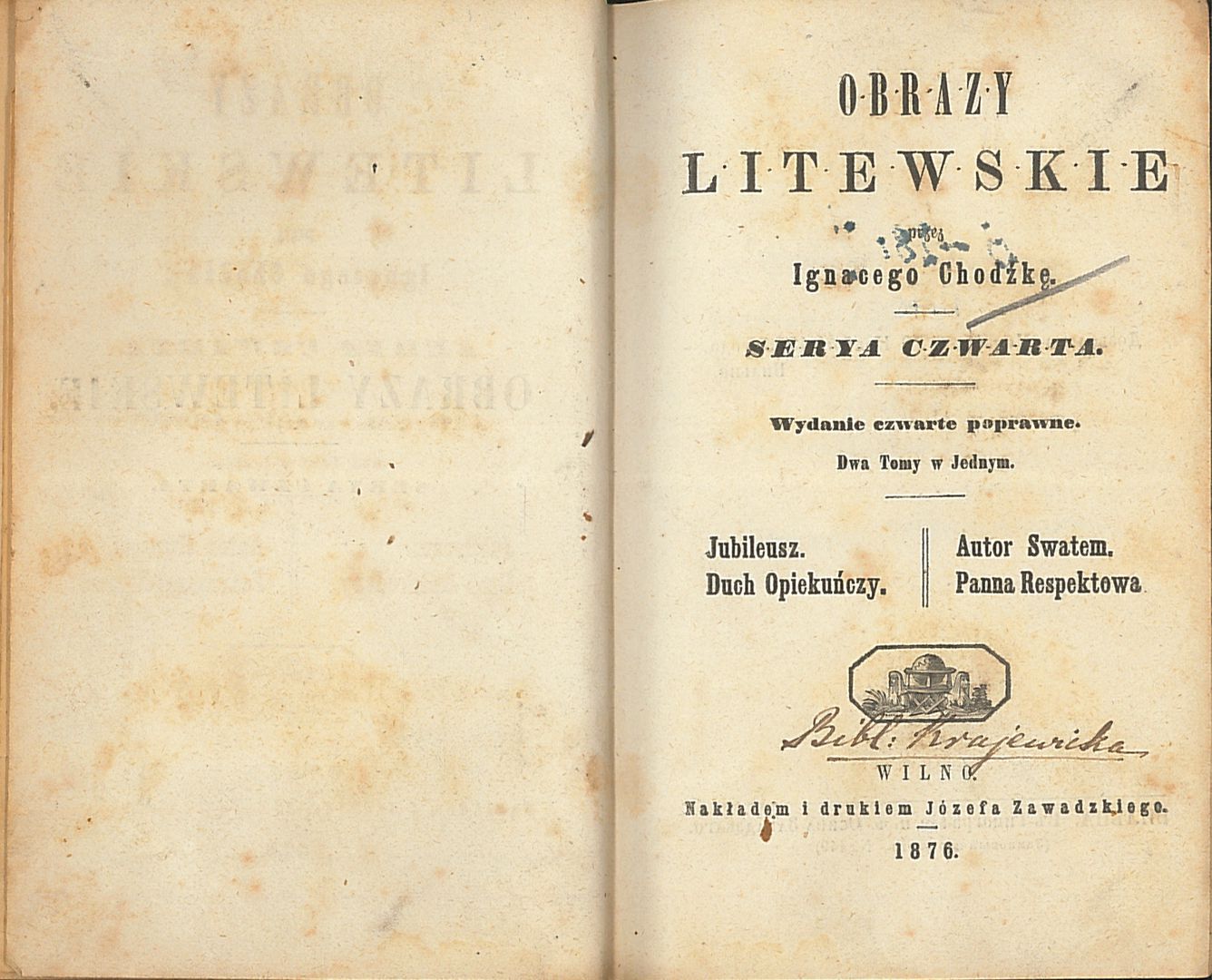| Wydane w seriach: | Obrazy litewskie Pisma Ignacego Chodźki dwa tomy w jednym |