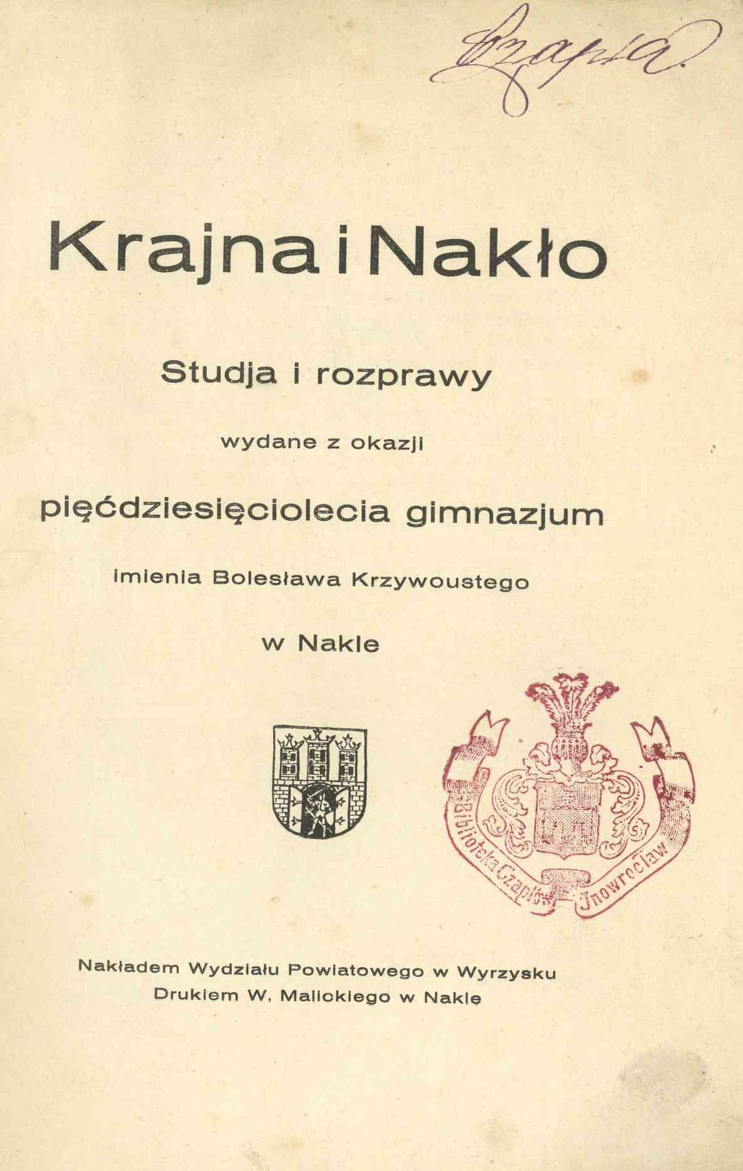 studja i rozprawy wydane z okazji 50-lecia gimnazjum im. Bolesława Krzywoustego w Nakle