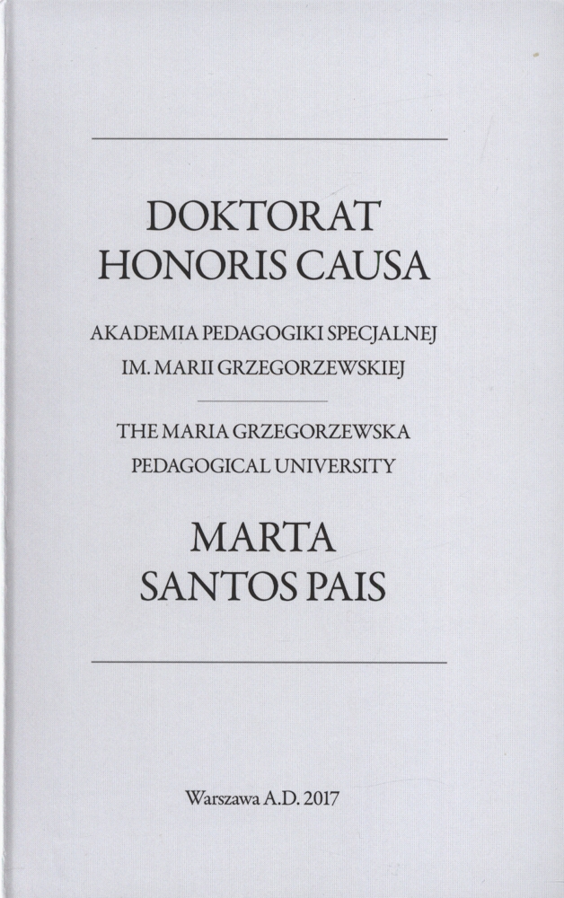 | Inne tytuły: | Akademia Pedagogiki Specjalnej im. Marii Grzegorzewskiej Warszawa, 13 września 2017 roku Doktorat Honoris Causa Akademia Pedagogiki Specjalnej im. Marii Grzegorzewskiej The Maria Grzegorzewska Pedagogical University The Maria Grzegorzewska Pedagogical University Marta Santos Pais Warsaw, 13 September 2017 |