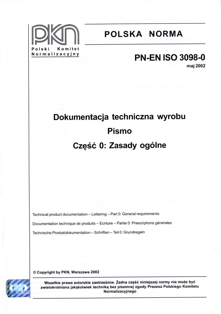 Dokumentacja techniczna wyrobu - Pismo - Zasady ogólne PN-EN ISO 3098-0